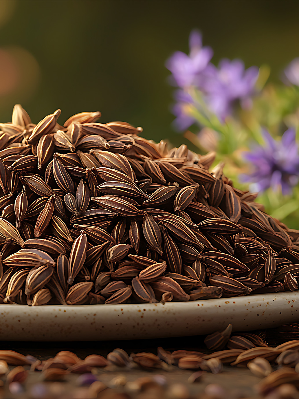 Caraway essential oil is obtained by steam distillation of the ripe (dried) fruits of Carum carvi L.