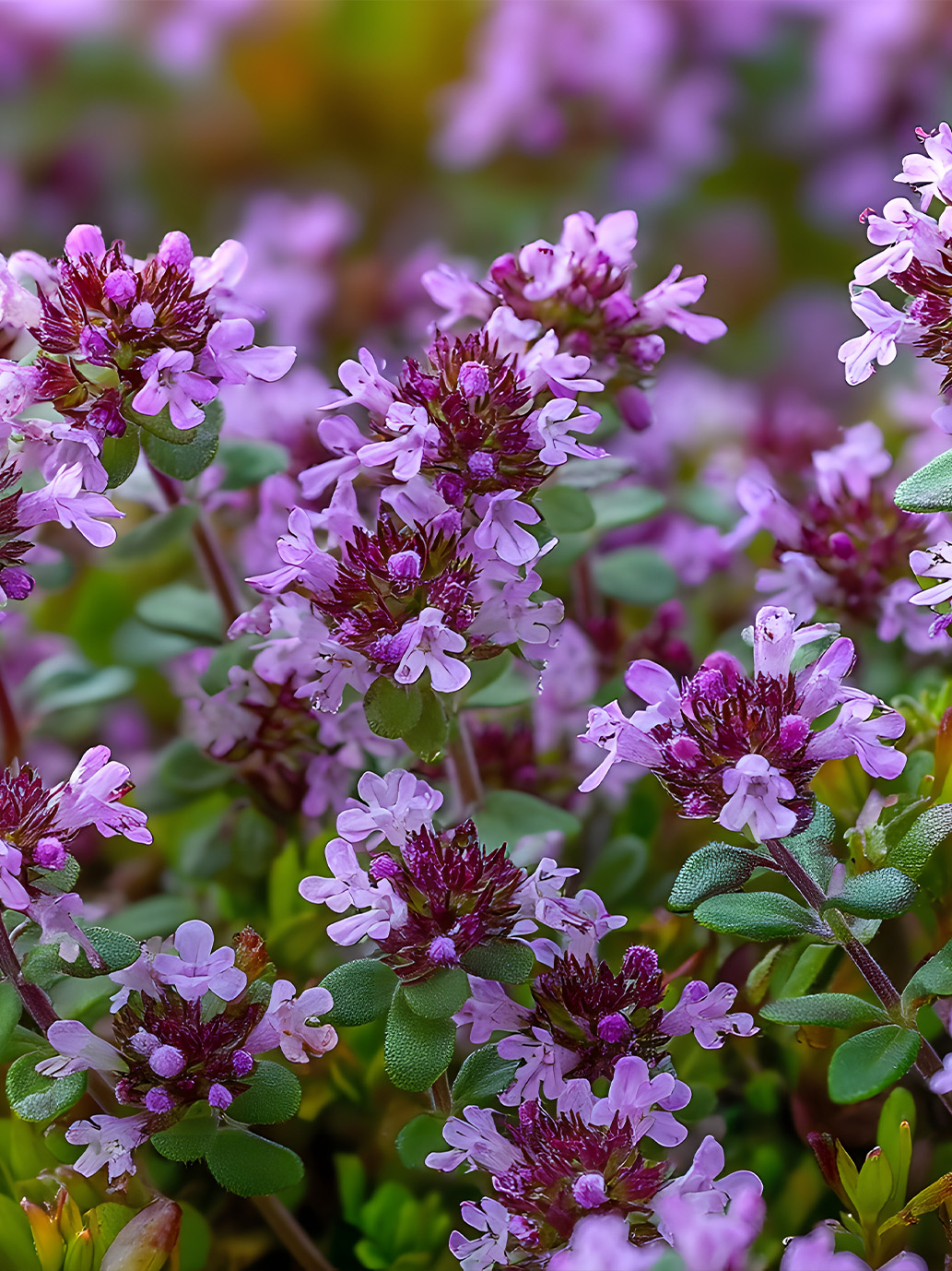 Wild Thyme essential oil is obtained by steam distillation of the partially dried flowering tops of Thymus serpyllum L..
