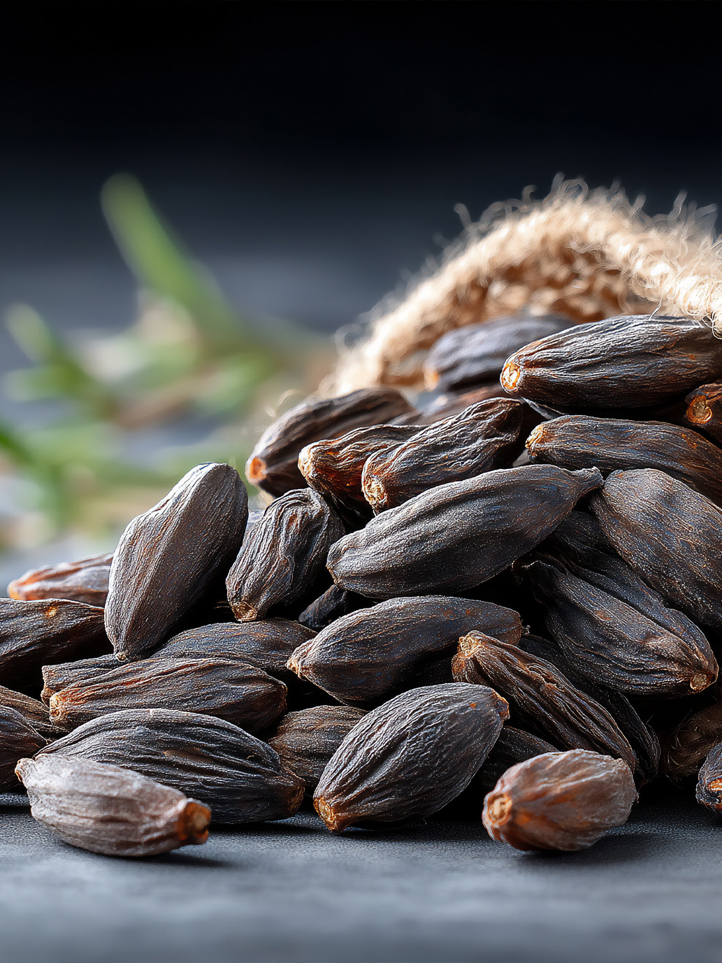 Tonka Bean absolute is obtained by alcoholic extraction of crushed beans from Dipteryx odorata.